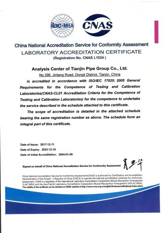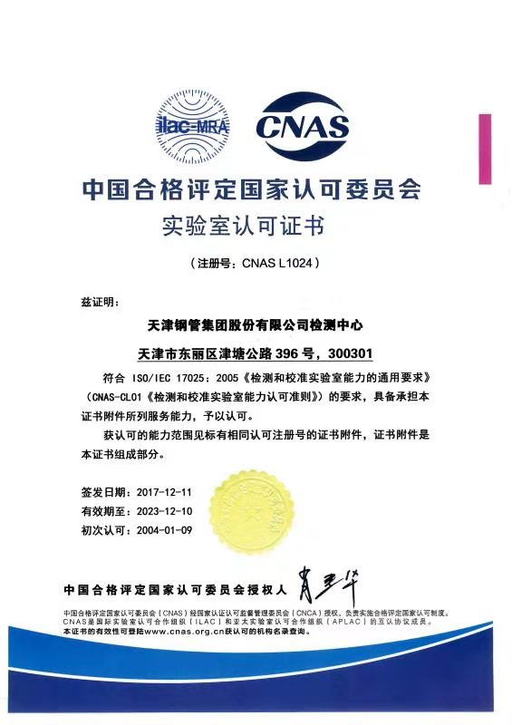 CNAS證書就是企業(yè)出具的材質單得到國家評定認可,檢測設備,以及檢測結果完全標準的一個證明,這個知識可以提醒你所買的無縫鋼管是不是廠家出局的證明有效,和屬實的材料證明,天津鋼管集團股份有限公司的天津大無縫鋼管廠出具的材質單完全符合材料的各項元素化驗。天津無縫鋼管廠報道www.www.yqfkh.cn
