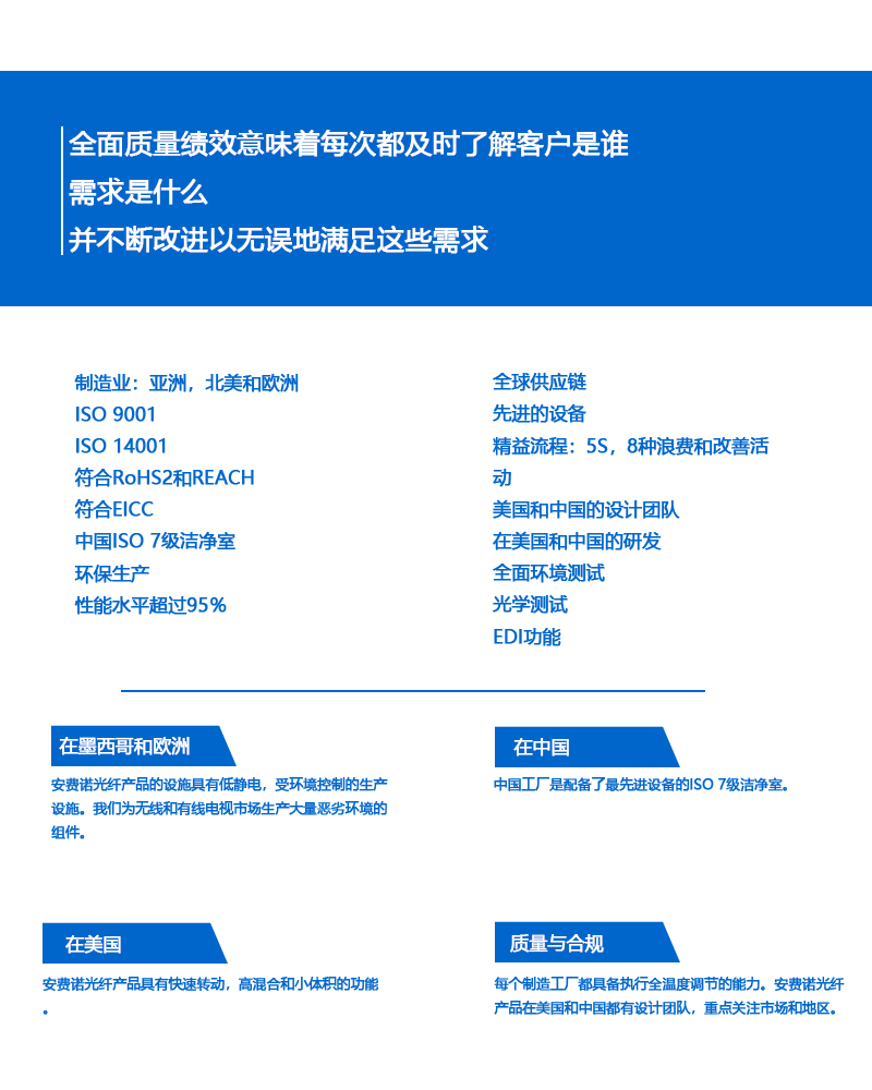 安費諾總部位于美國康涅狄格州,集團在全球實施本地化戰略,共在全球設立90多間工廠及100多個銷售辦事處,全球員工總數達30000人,直接為各大洲的客戶提供產品和實施本地化服務在世界上安費諾是其中一個最大的制造商的互連產品。公司設計、制造和市場電氣、電子和光纖連接器,同軸和扁平帶狀電纜和互連系統